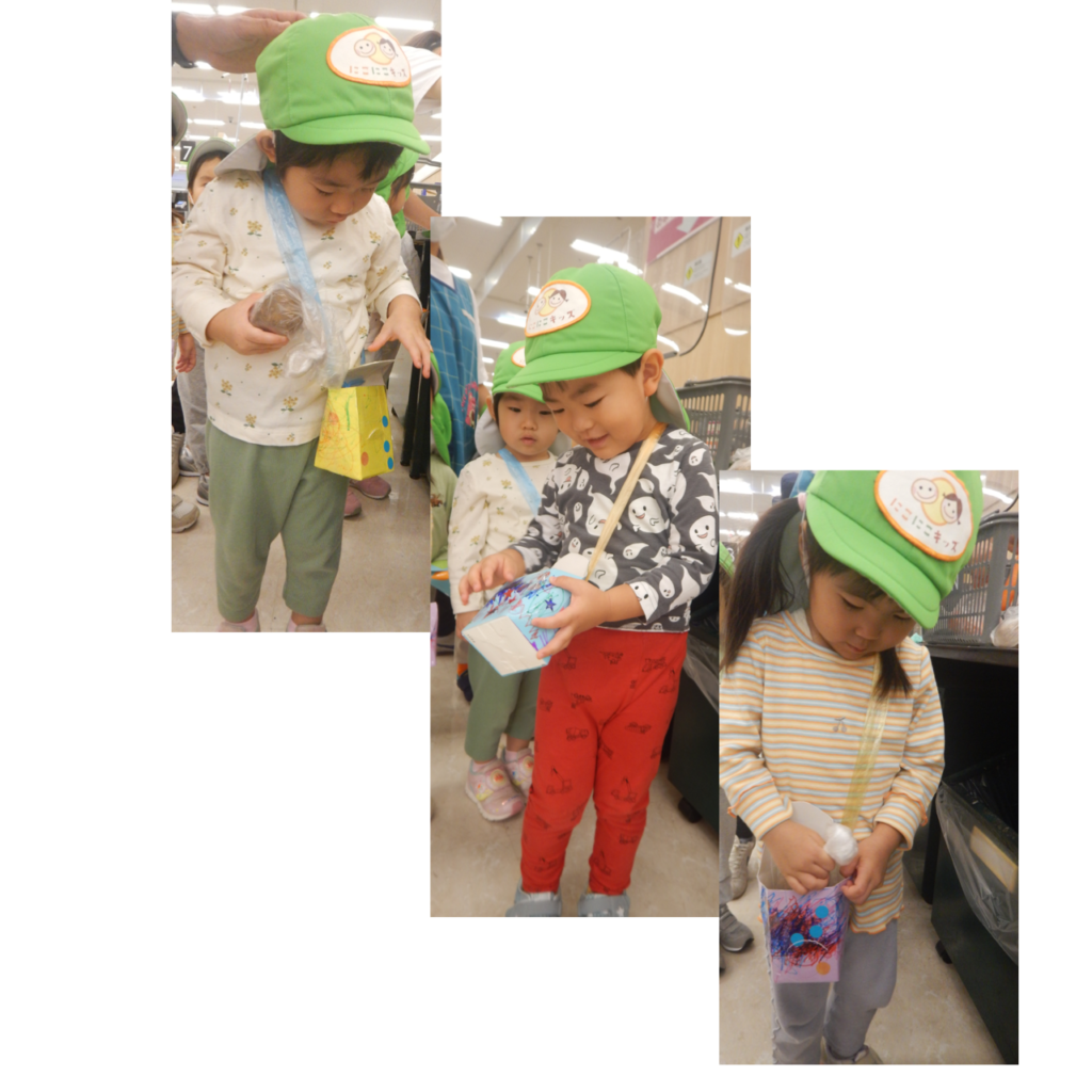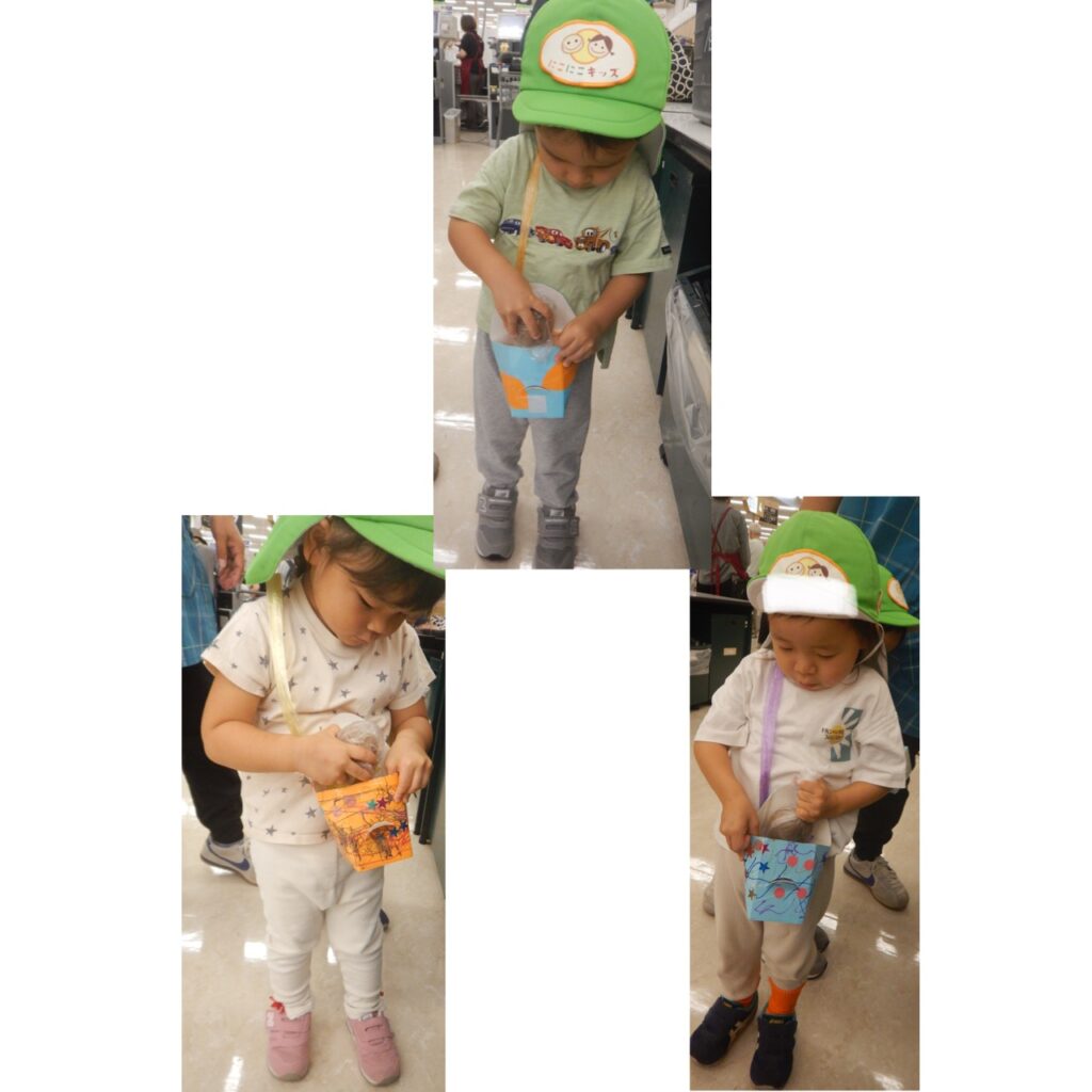 買い物をした荷物も重たかったので、みんなで順番交代で持って帰りました🛍️レジでは、『お願いします』『ありがとうございました』みんな お礼も上手に言えていましたよ🌟