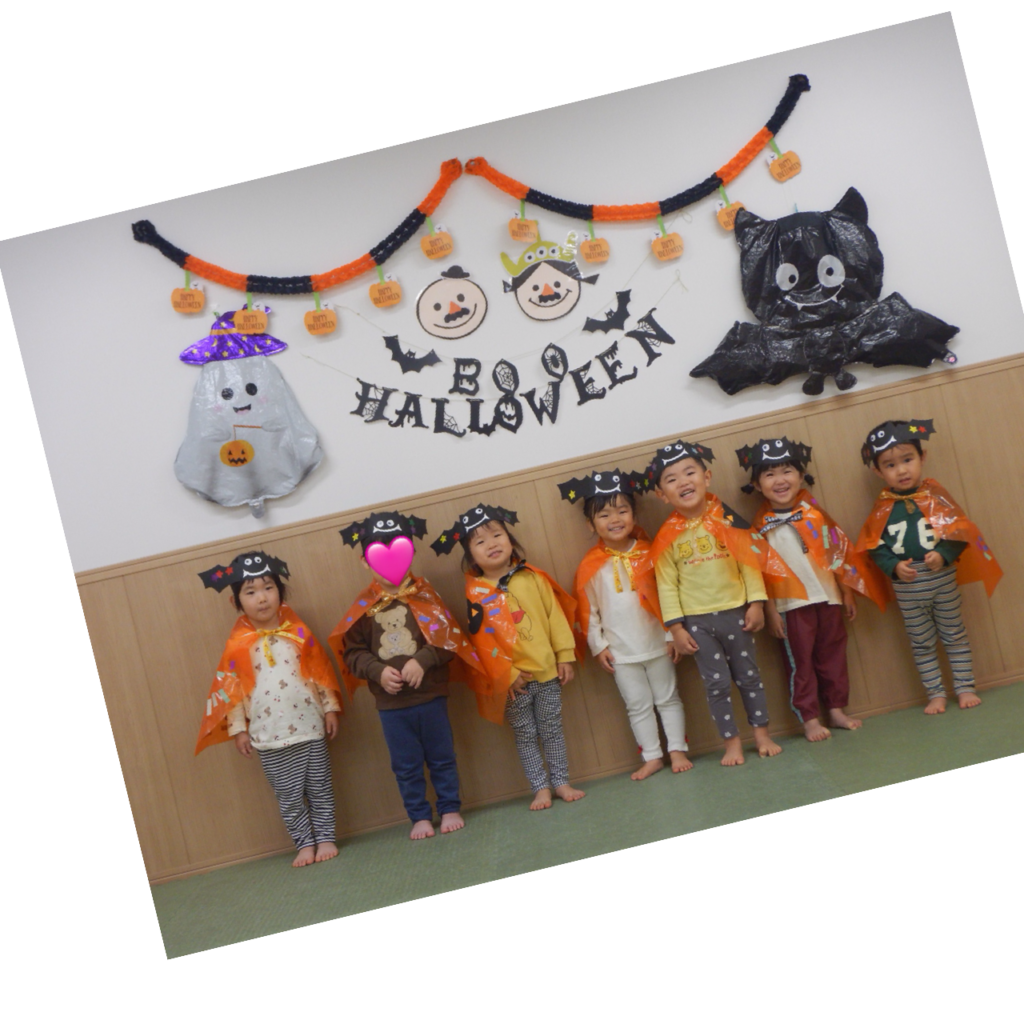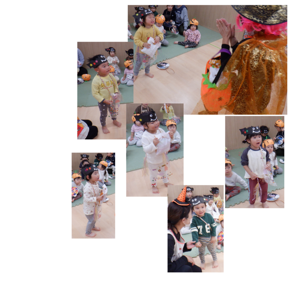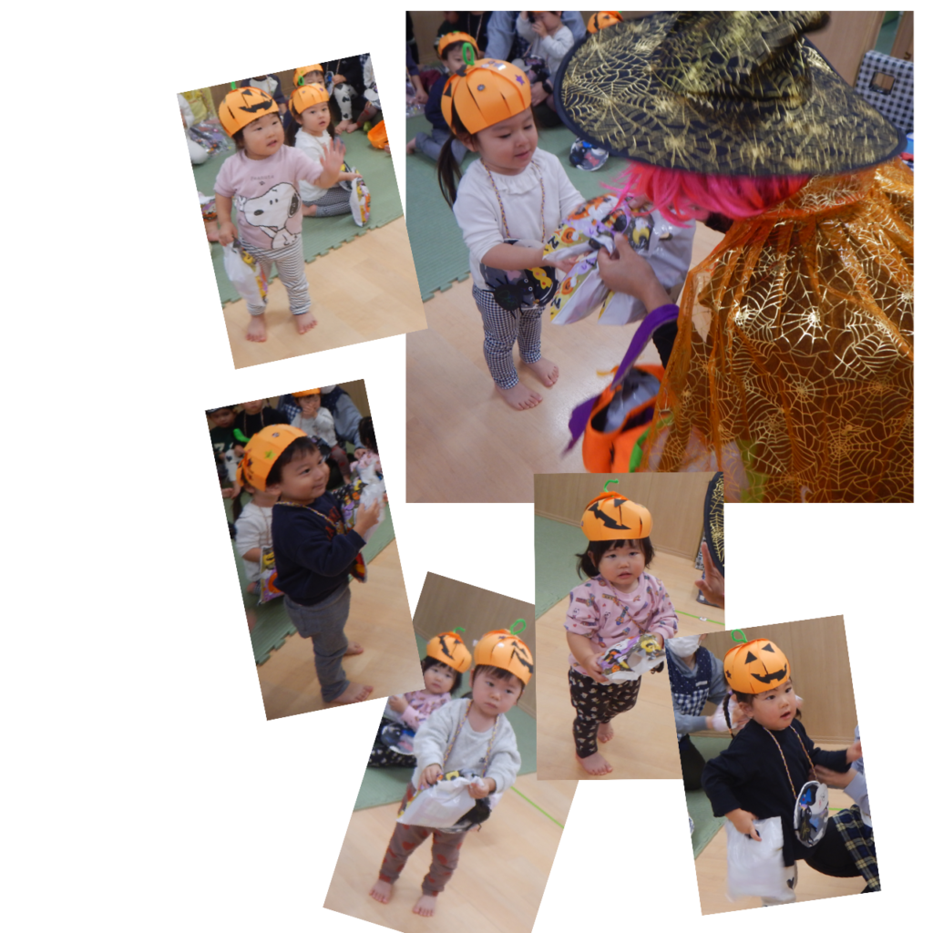 玄関からピンポーンとインターホンを押して入ってきた魔女🧙♀️さんに、子どもたちはびっくり😳‼️ 驚きすぎて泣いてしまう子や嬉しそうにしている子、動きが止まっている子 様々な反応でしたが お菓子を持って来てくれたとわかると、そーっと1人ずつ魔女🧙♀️さんに お菓子をもらいに行きました🌟