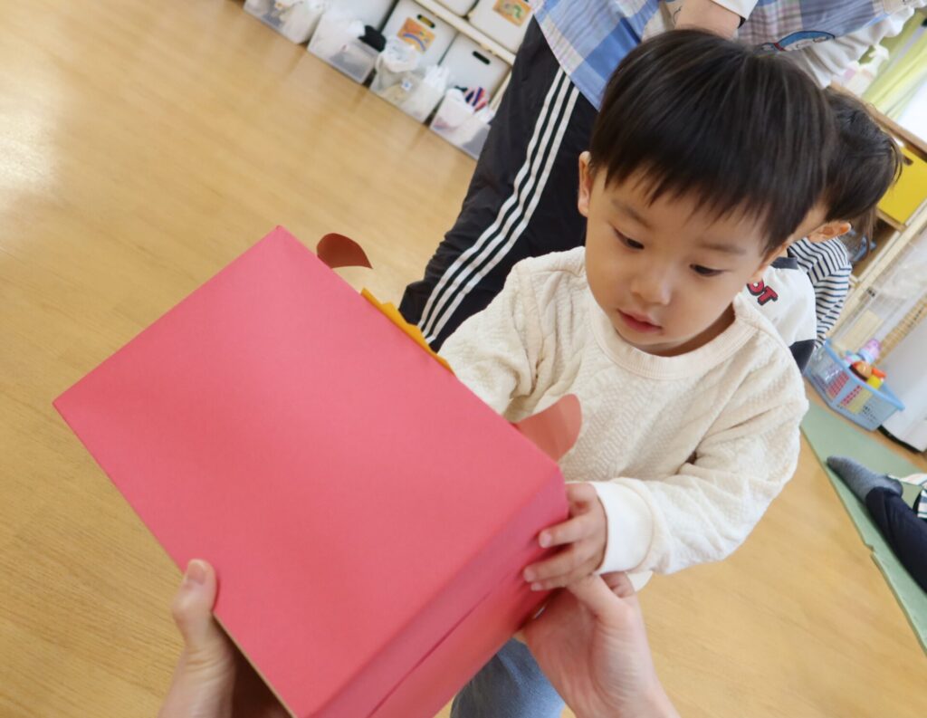 子どもたちとよく歩く散歩道の途中に、おじいちゃん や おばあちゃんがいる施設があります😊以前その前を通った時に声をかけていただき、中に入らせていただきました。その時に おじいちゃんやおばあちゃんと『はじめまして〜😆』✨と出会った子どもたち。初めての場所、初めて出会うおじいちゃん、おばあちゃんに少し緊張気味の子どもたちでしたが、手の温もりを感じたり、あたたかい言葉をかけて頂き、子どもたちにとっても私たち保育士にとっても素敵な✨時間になった出会いでした♪ そして今日‼️おじいちゃん や おばあちゃんにプレゼントを持って会いに行ってきましたよ💕