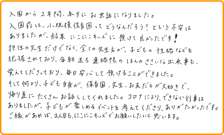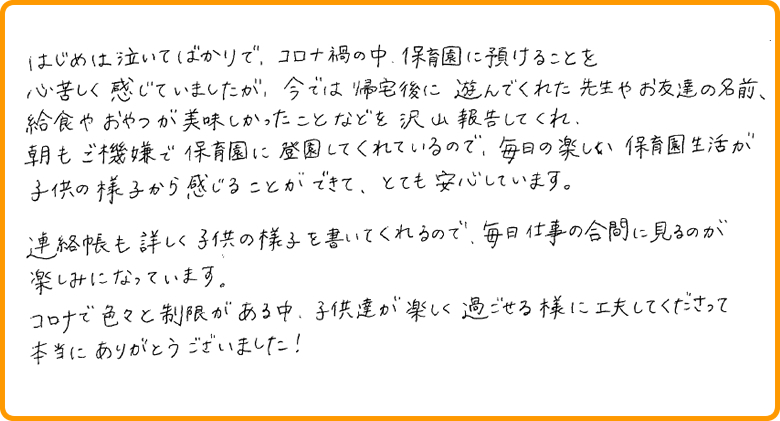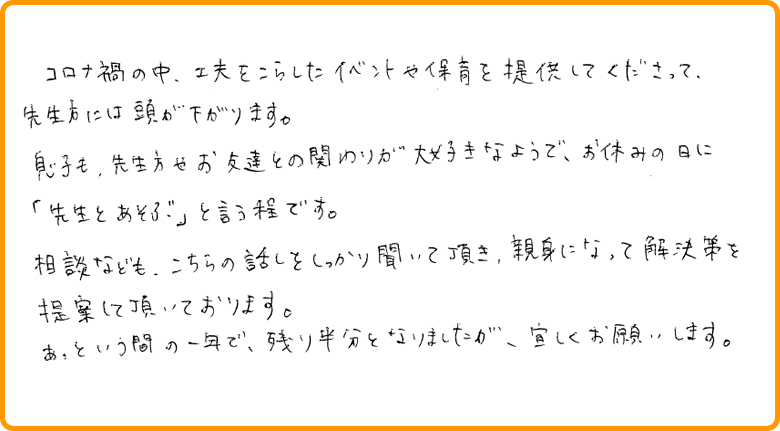 保護者様からのアンケートを掲載